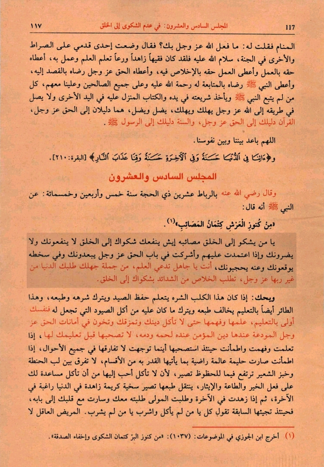 منبع: الفتح الربانی و الفیض الرحمانی، ص ۱۱۷.